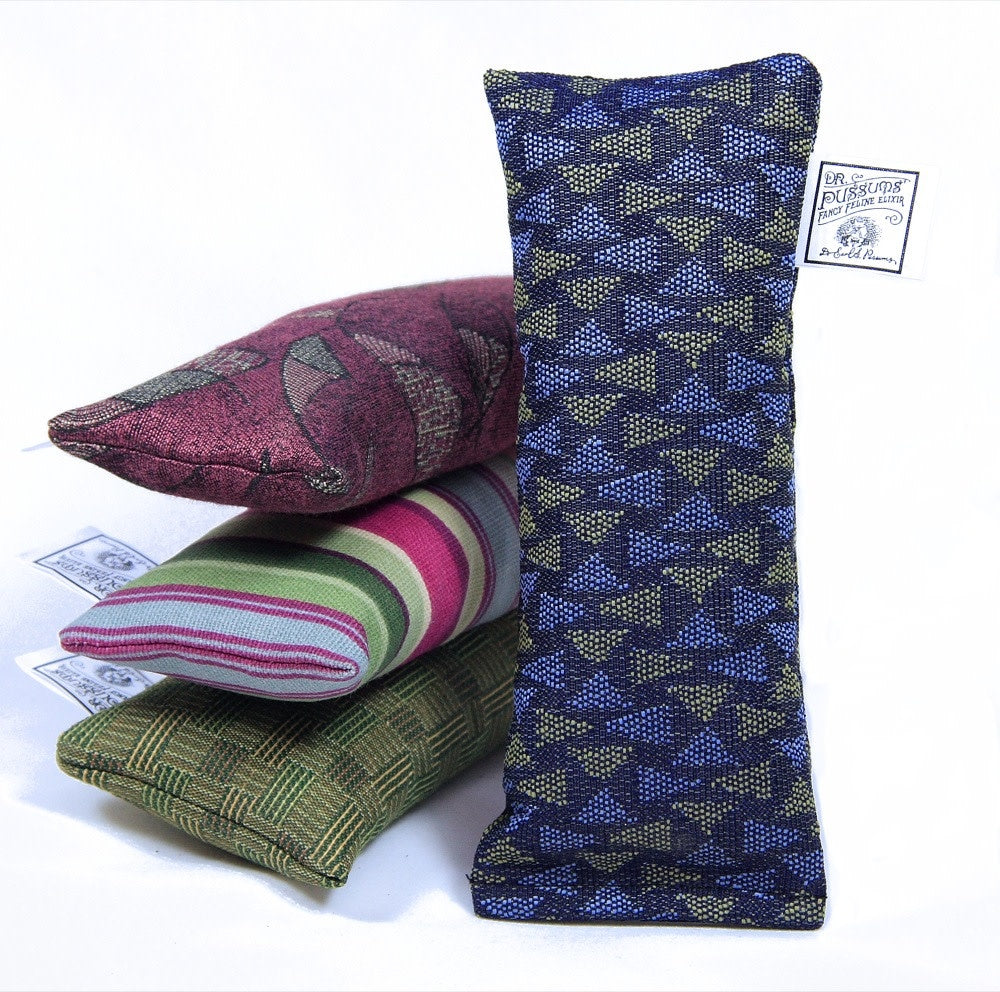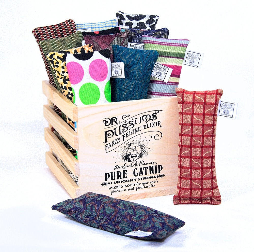 Single kicker filled with only Dr. Pussums Fancy Feline Elixir PURE CATNIP, no fillers. Comes in assorted colors and fabrics in both standard weight (more permeable) and heavy weight ( upholstery fabrics for the more aggressive kickers in your life!)