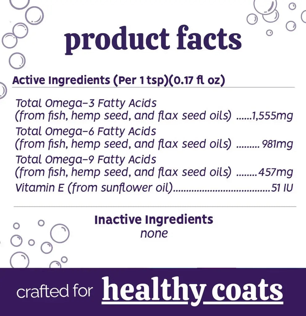 A 'do-everything' formula for your pet's skin and coat (plus so much more). It delivers healthy fats in just the right ratios to support overall health. Made from sustainably caught wild sardine, anchovy, and mackerel, this Omega 3/6/9 blend helps keep your pet's skin radiant and their coat as lustrous as the day they first captured your heart.