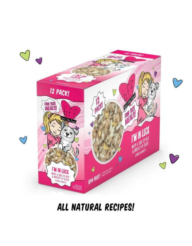 Crafted with care, this rice and duck cup provides a delicious and wholesome meal for your beloved pet. The Bff Dog I'm In Luck Rice & Duck Cup 2.7Oz is carefully formulated to meet your dog's dietary requirements, offering a balanced blend of rice and succulent duck. With its grain-free recipe, it caters to dogs with specific dietary needs, making it an ideal choice for pets with sensitivities or allergies. Rest assured that this premium dog food is made from high-quality ingredients, ensuring optimum nourishment and taste.