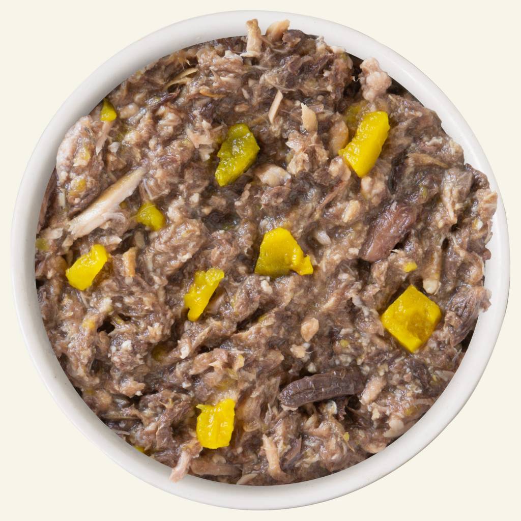 Chicken Broth, Chicken, Tuna, Pumpkin, Natural Flavor, Potato Starch, Guar Gum, Calcium Lactate, Tricalcium Phosphate, Choline Chloride, Taurine, Zinc Sulfate, Vitamin E Supplement, Thiamine Mononitrate (Vitamin B1), Niacin Supplement (Vitamin B3), Calcium Pantothenate, Vitamin A Supplement, Manganese Sulfate, Riboflavin Supplement (Vitamin B2), Pyridoxine Hydrochloride (Vitamin B6), Ferrous Sulfate, Copper Sulfate, Vitamin D3 Supplement, Folic Acid, Vitamin B12 Supplement, Potassium Iodide, Menadione Sodium Bisulfite Complex (Source of Vitamin K)