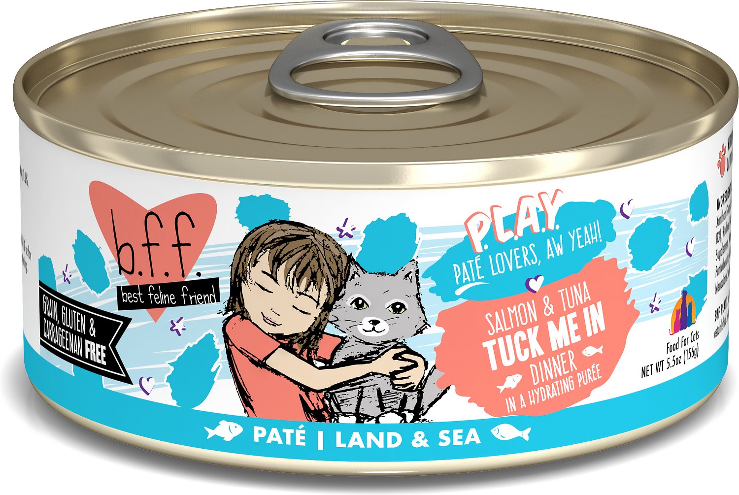 This delicious dinner may, indeed, tuck your kitty in to a post-food nap. Your favorite feline will have sweet dreams about this creamy, salmon and tuna paté, and all of its amazing flavor!