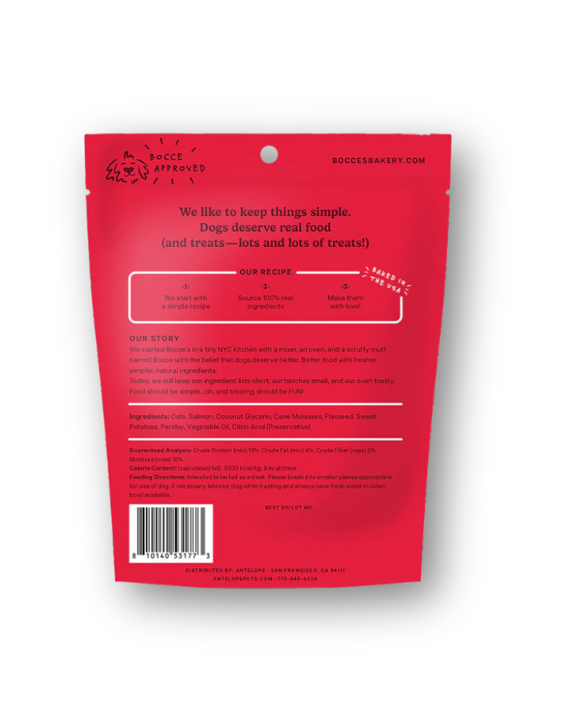 Ingredients: Oats, Salmon, Coconut Glycerin, Cane Molasses, Flaxseed, Sweet Potatoes, Parsley, Vegetable Oil, Citric Acid (Preservative)
