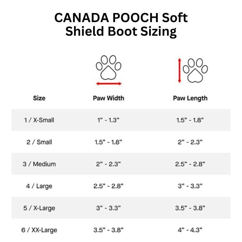 - Find your dog's boot size by printing out this chart to help measure their paws