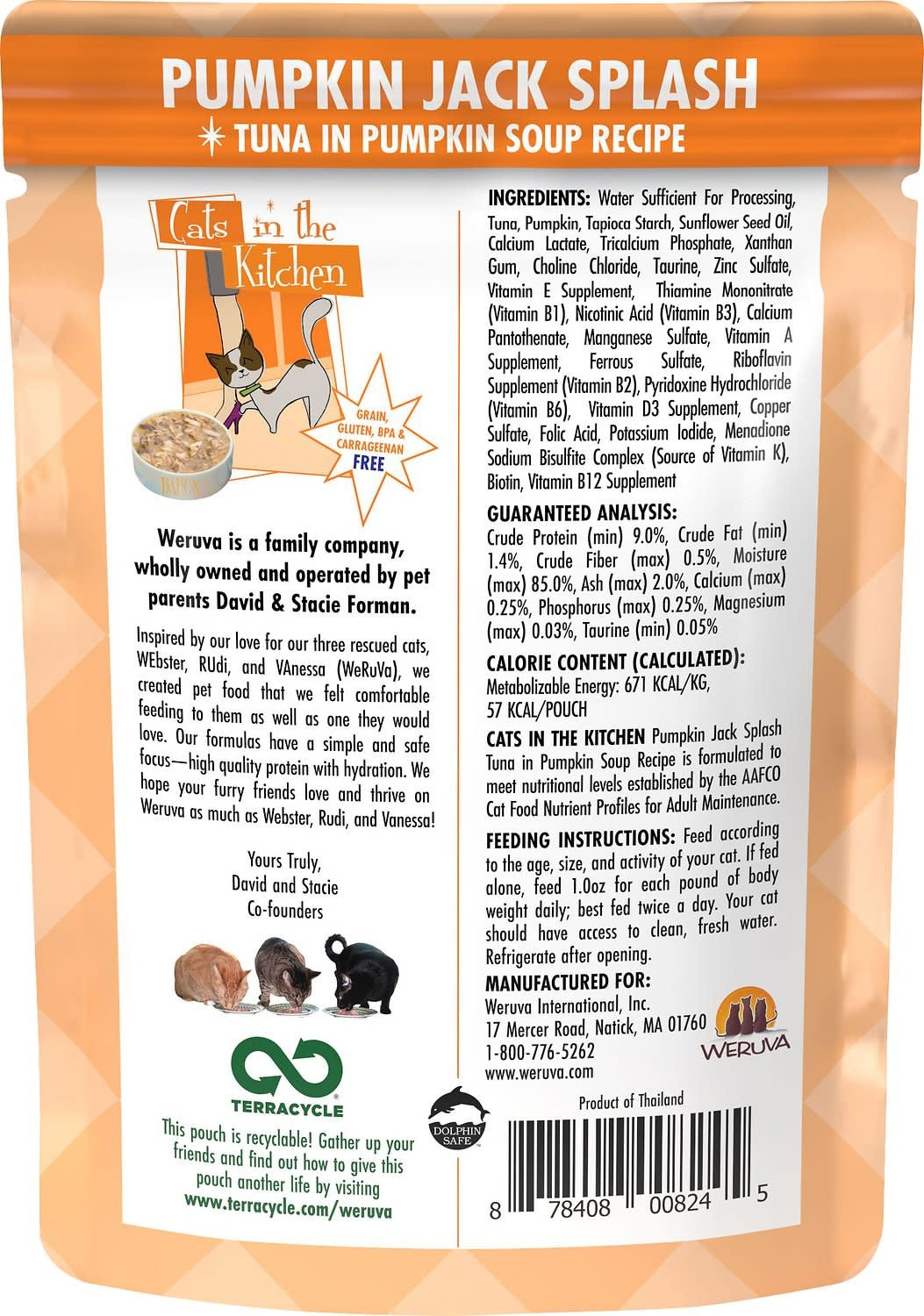 Water Sufficient For Processing, Tuna, Pumpkin, Tapioca Starch, Sunflower Seed Oil, Calcium Lactate, Tricalcium Phosphate, Xanthan Gum, Choline Chloride, Taurine, Zinc Sulfate, Vitamin E Supplement, Thiamine Mononitrate (Vitamin B1), Nicotinic Acid (Vitamin B3), Calcium Pantothenate, Manganese Sulfate, Vitamin A Supplement, Ferrous Sulfate, Riboflavin Supplement (Vitamin B2), Pyridoxine Hydrochloride (Vitamin B6), Vitamin D3 Supplement, Copper Sulfate, Folic Acid, Potassium Iodide, Menadione Sodium Bisulfite Complex (Source of Vitamin K), Biotin, Vitamin B12 Supplement