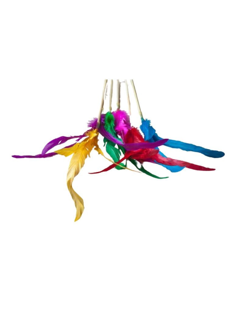 Feather: three feathers, pink, purple, blue, green, yellow & teal