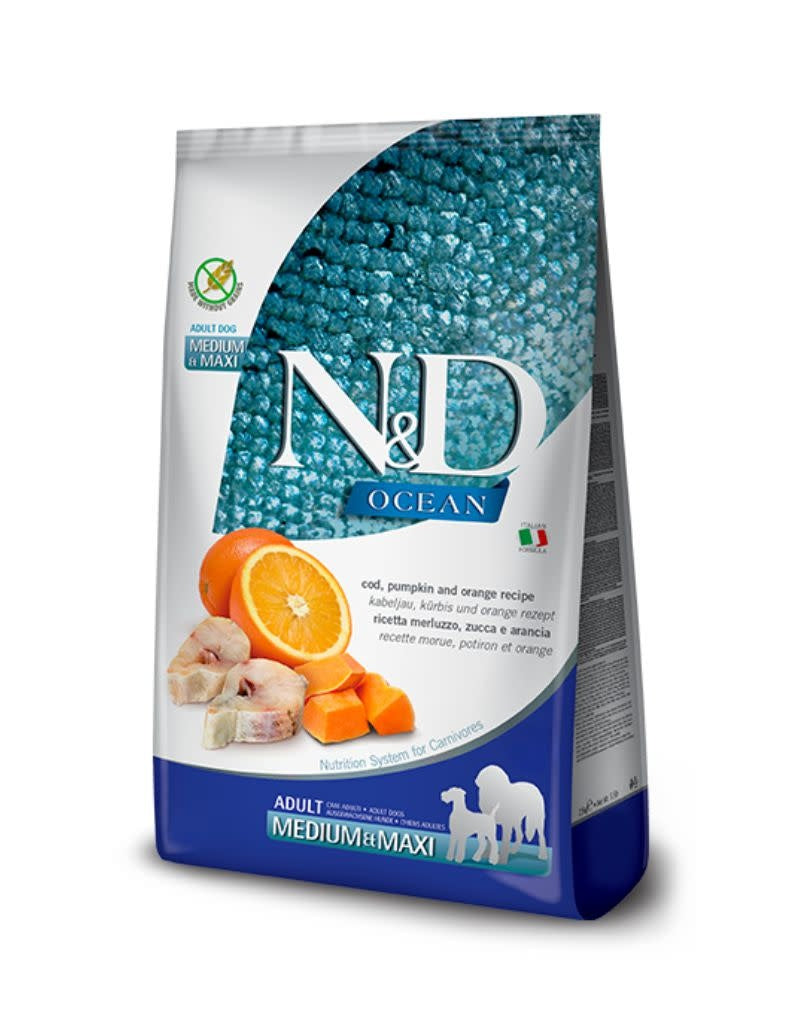 Every Farmina food is made with the best ingredients with the correct amounts of protein, fats, limited carbohydrates and advanced long life vitamins and minerals. The Natural & Delicious high protein, 20% Ancestral Grain formulas are comprised of 60% animal ingredients (pre-cooking weight), 20% organic spelt and organic oats and 20% vegetables, fruits, vitamins and minerals. Delicious Codfish & Orange flavor contains no peas, legumes, meals or by-products for nutrition you can feel great about.