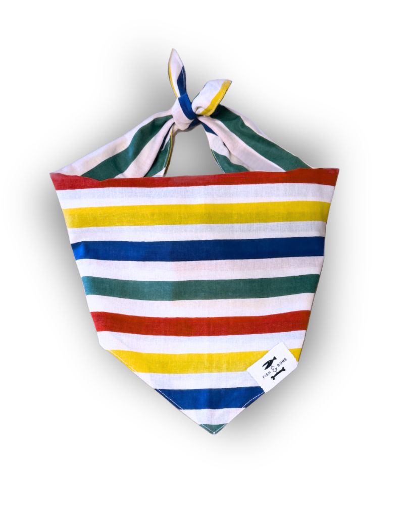Bold, bright, and playful — this bandana is all about fun! Featuring crisp stripes in classic primary colors, it’s a cheerful way to add a pop of personality to your pup’s look. Made from soft, durable cotton and easy to tie, it’s perfect for everyday walks, playdates, or just showing off your pup’s colorful style.