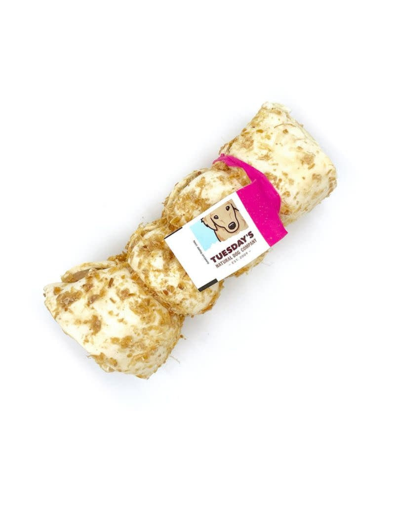 These beef cheek rolls are a good alternative to traditional rawhide bones and rolls. Beef cheeks aren't processed like traditional rawhide and still retain the different layers of the skin. Unlike a rawhide knotted bone, beef cheeks are less dense, made out of one continuous piece of beef cheek (rather than smaller scraps cooked together in a mold) and more digestible. This is a long lasting and collagen-rich alternative to traditional rawhide. Our chews are softer and more easy to digest without losing the longevity of the chewing time. Great for aggressive chewers and puppies!