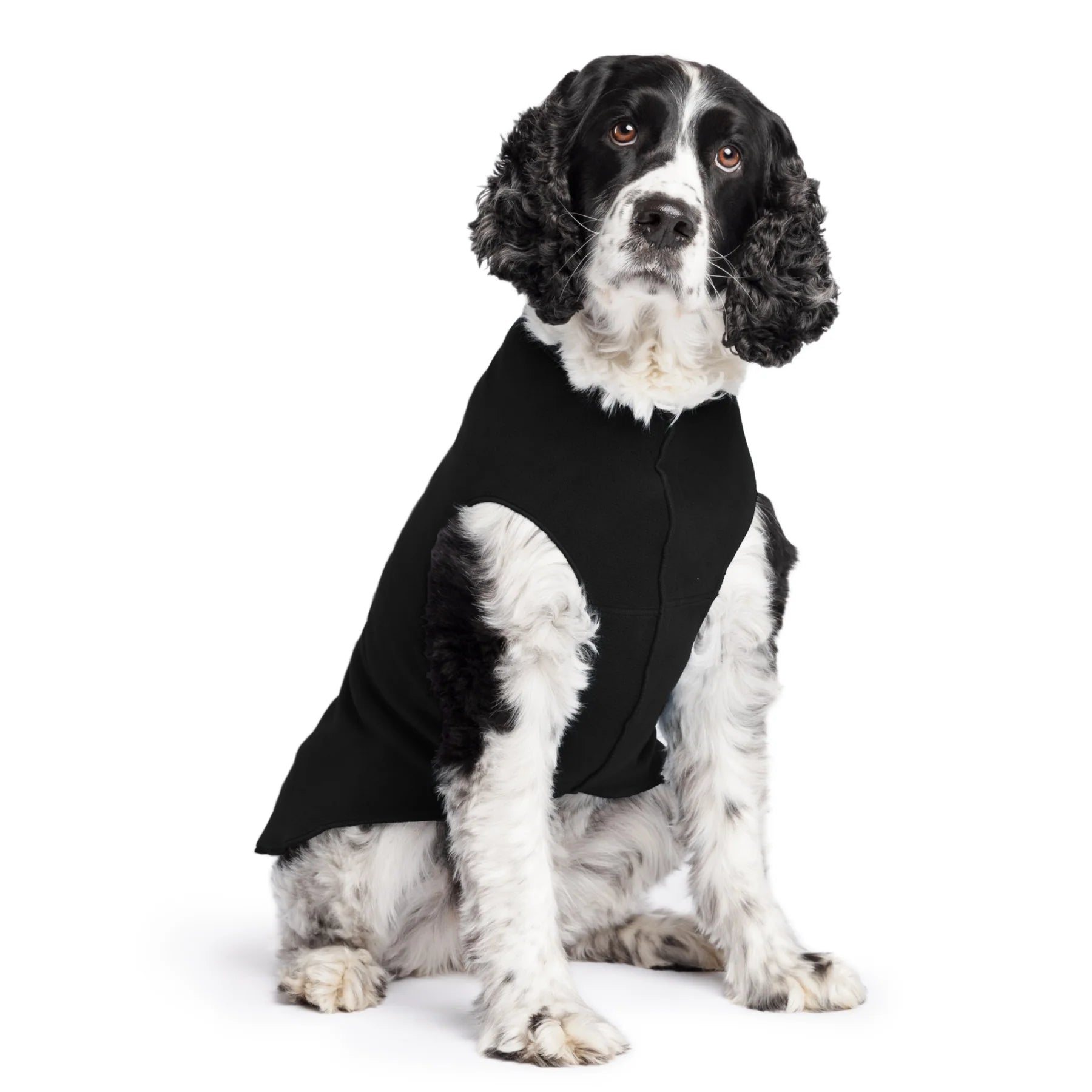 This is truly a fantastic and useful garment that you’ll reach for over and over again. The GoldPaw Stretch Fleece contains recycled polyester and spandex for 4-way stretch. The finish is unbelievably soft, like velvet. It’s a piece of cake to put on and moves with your dog, making it the most comfortable coat around. Washes like a dream!