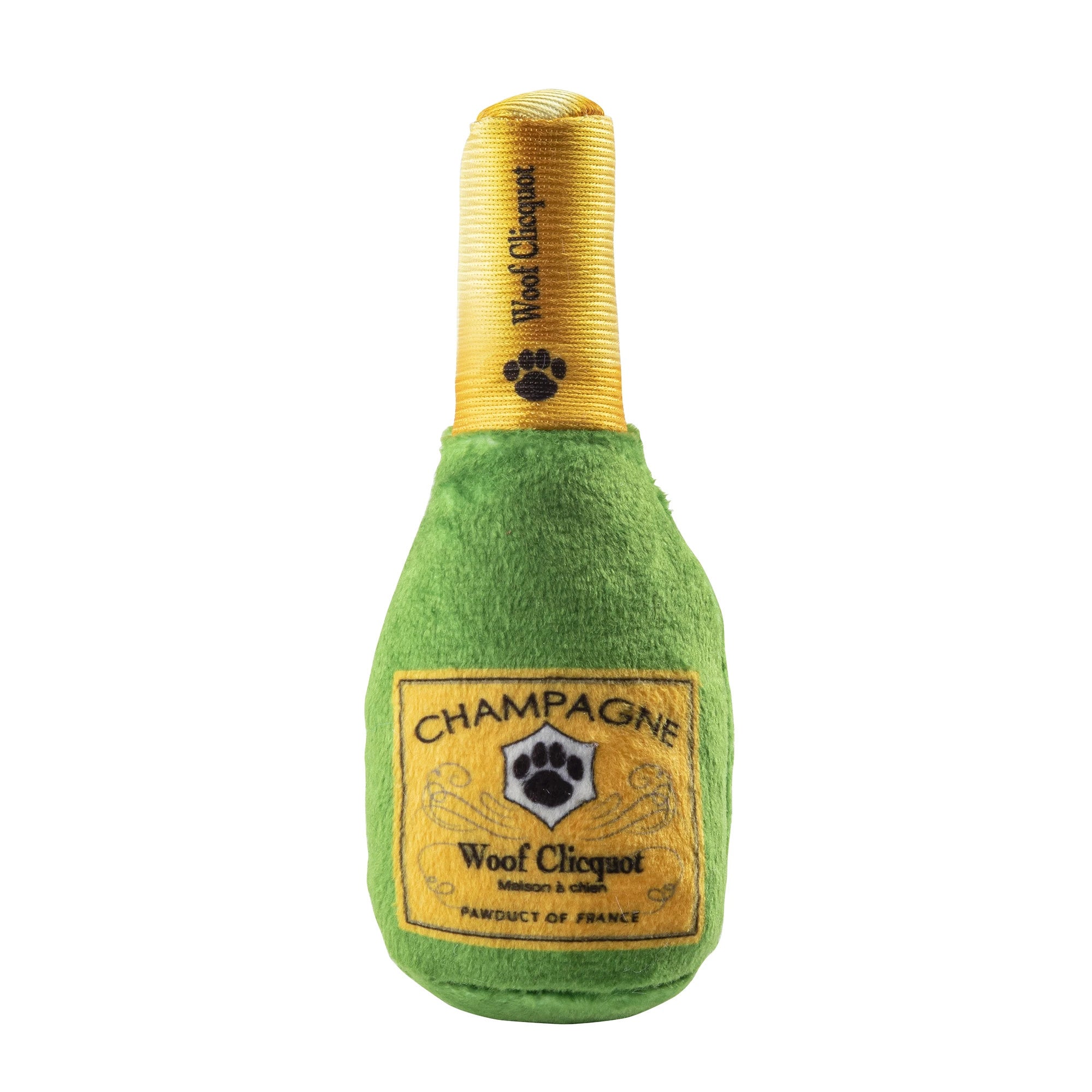 Burrow toys are the best and this Haute Diggity Dog Woof Clicquot Pawty Set will have their humans laughing right along for hours. Three adorable parody plush toys inside an elegant squeaky plush burrow: