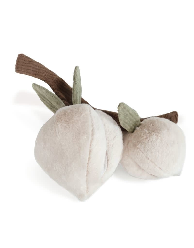 The branch crinkles and connects the two peaches loosely for those who loves to shake while playing. Squeakers are added inside for extra fun.