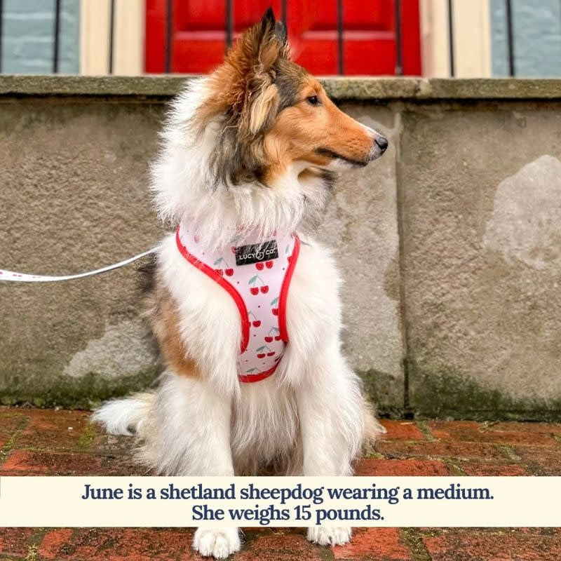 Made with water-repellant neoprene, this harness features two prints in one, a super sweet cherry pattern and a bright red picnic gingham! It's easy to switch to the other side for a brand new look! Explore our reversible harnesses for easy-care, for a fit that moves with all of your pup's natural wiggles and shakes.