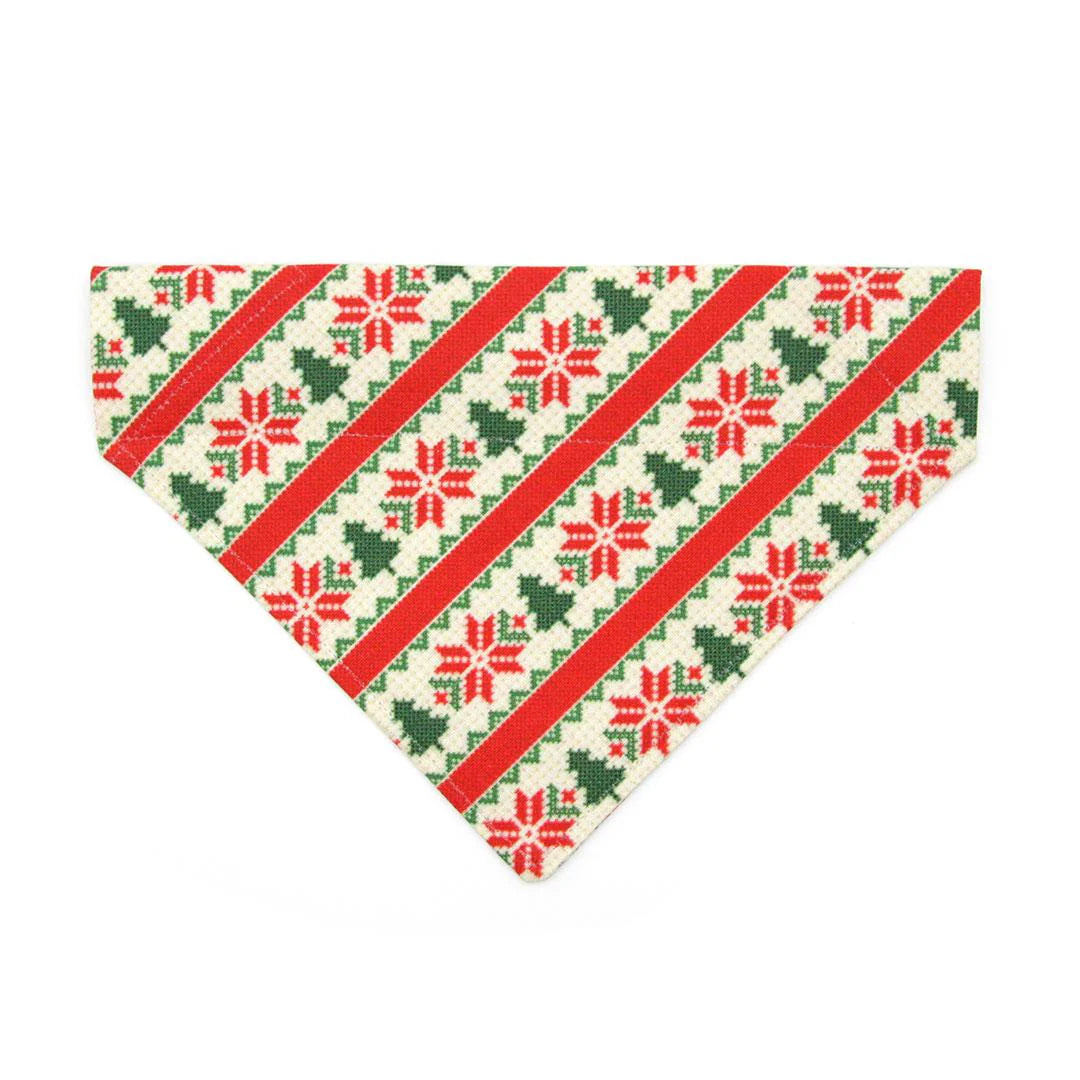 The slide-on / over-the-collar bandana format provides maximum comfort and ease for pets and zero fuss for the owner. No need to figure out how to tie it artfully or worry about it coming loose. Just slide it on the collar and go!