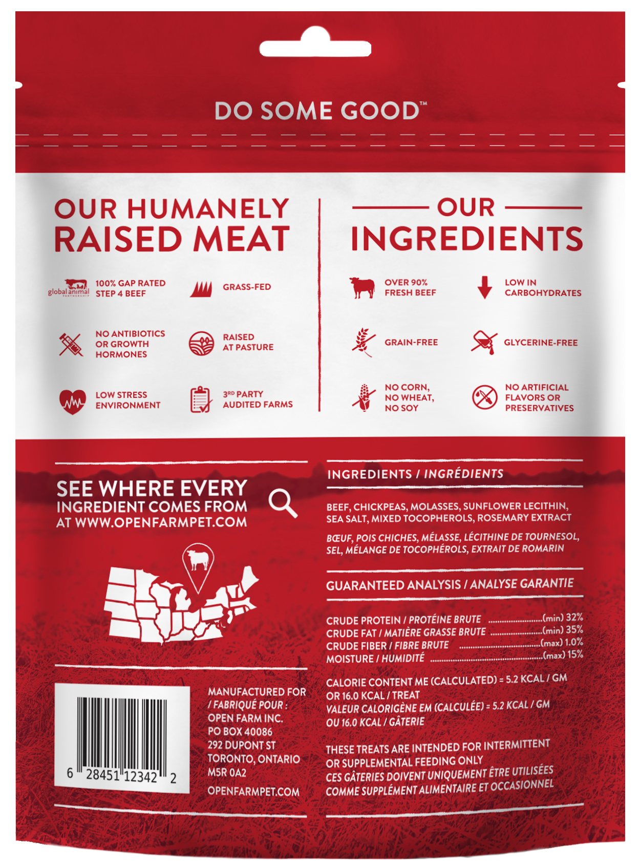 Humanely Raised Beef, Garbanzo Beans (Chickpeas), Molasses, Sunflower Lecithin, Sea Salt, Mixed Tocopherols (a natural preservative), Rosemary Extract