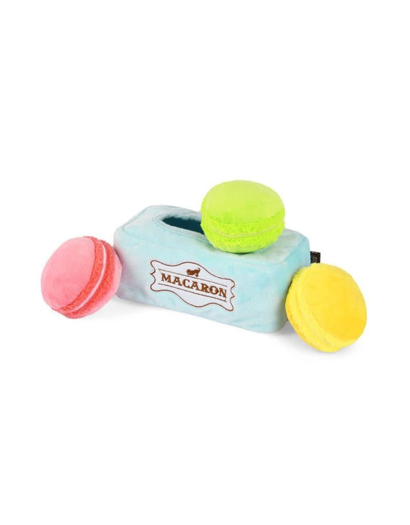 This delightful box of colorful macarons brings joy to your furry friend with three squeaky delights nestled in a crinkly blue box. Perfect for solo play or shared fun with a playmate, this find-n-seek toy lets you hide cookies inside, keeping the excitement and playfulness going. Watch as your pup savors each squeaky bite, turning playtime into a delightful treat-filled adventure!