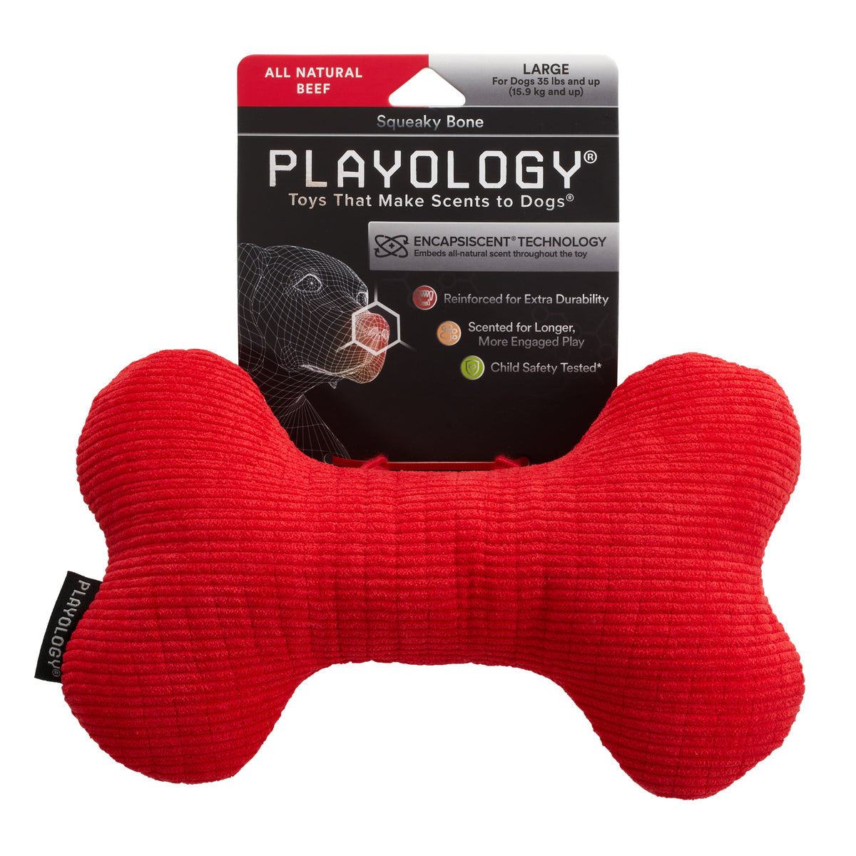 This toy totally passes the smell test, boasting an all-natural beef scent that can keep your playful pup engaged for longer periods of time than unscented toys. It features a built-in squeaker and is reinforced for durability, making it a great toy for dogs of all ages. Plus, it’s available in three sizes and two mouthwatering scents, allowing you to find the combination that best suits your dog’s size and taste.