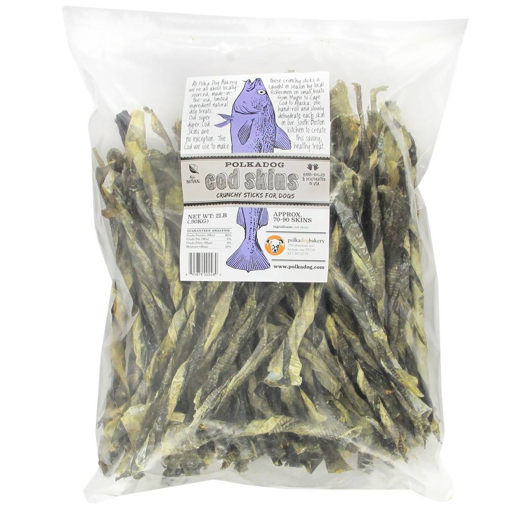 Polkadog Bakery, is all about locally-sourced, made-in-the-usa, limited ingredient natural dog treats. Their super duper Cod Skins are no exception. The Cod used to make these crunchy sticks is wild caught in season by local fishermen on small boats in Alaska. Skins are haand-rolled and slowly dehydrated in their Boston kitchen to create this savory, healthy treat.