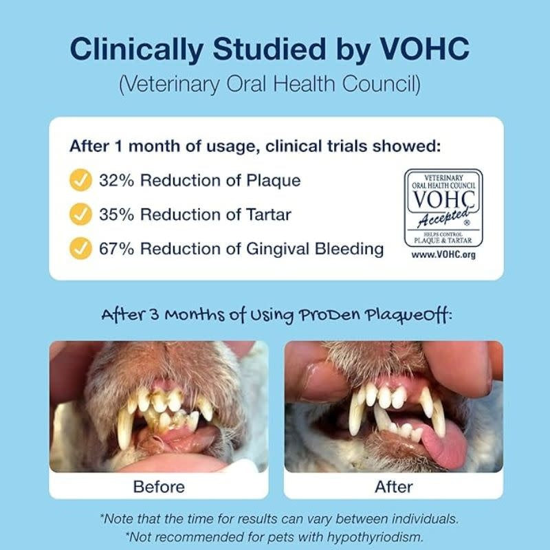 ProDen PlaqueOff Mini Dental Bones are a natural dental supplement for dogs, specifically formulated to help keep teeth clean. These chews contain the Plaque Off System which helps reduce plaque and tartar buildup, and can be used as a daily supplement to regular dental hygiene.