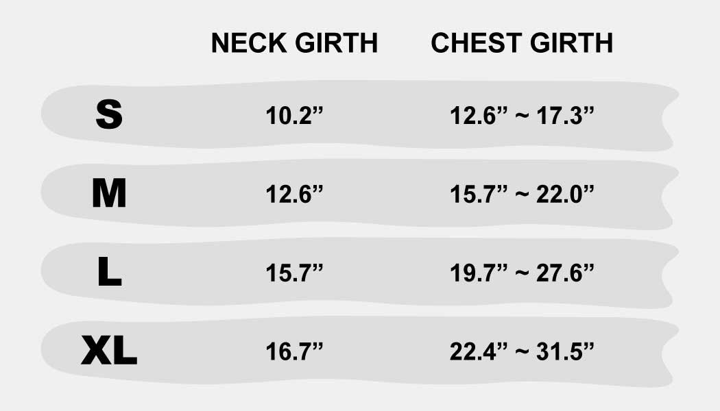- Size: Small: 10.2" Neck, 12.6"~17.3" Chest