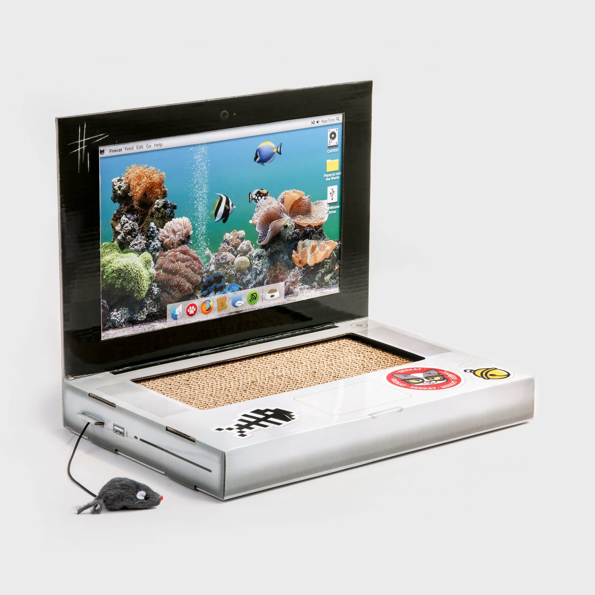 - Unleash your cats work ethic with this cat scratching board laptop - a novelty cat post alternative that has removable laptop wallpapers & toy mouse for working kitties. A cat scratching post for large cats & small