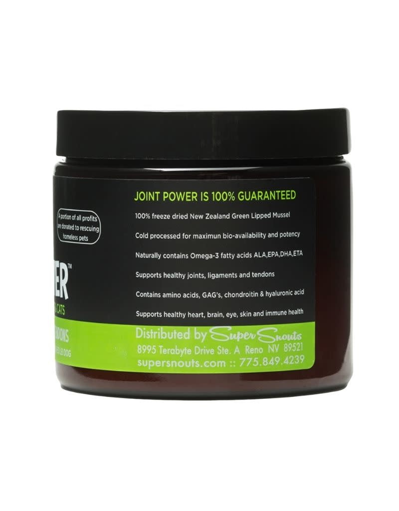 Super Snouts Joint Powder contains a rich source of all major classes of Glycosaminoglycans (GAGS), natural proteins, Omega-3 fatty acids, minerals, and mucopolysaccharides. The naturally occurring bioactive substances found in Green Lipped Mussel Extract maintains and supports normal joint mobility, flexibility, elasticity, tensile strength, cartilage maintenance, eye health, cardiovascular health, and maintaining healthy skin.