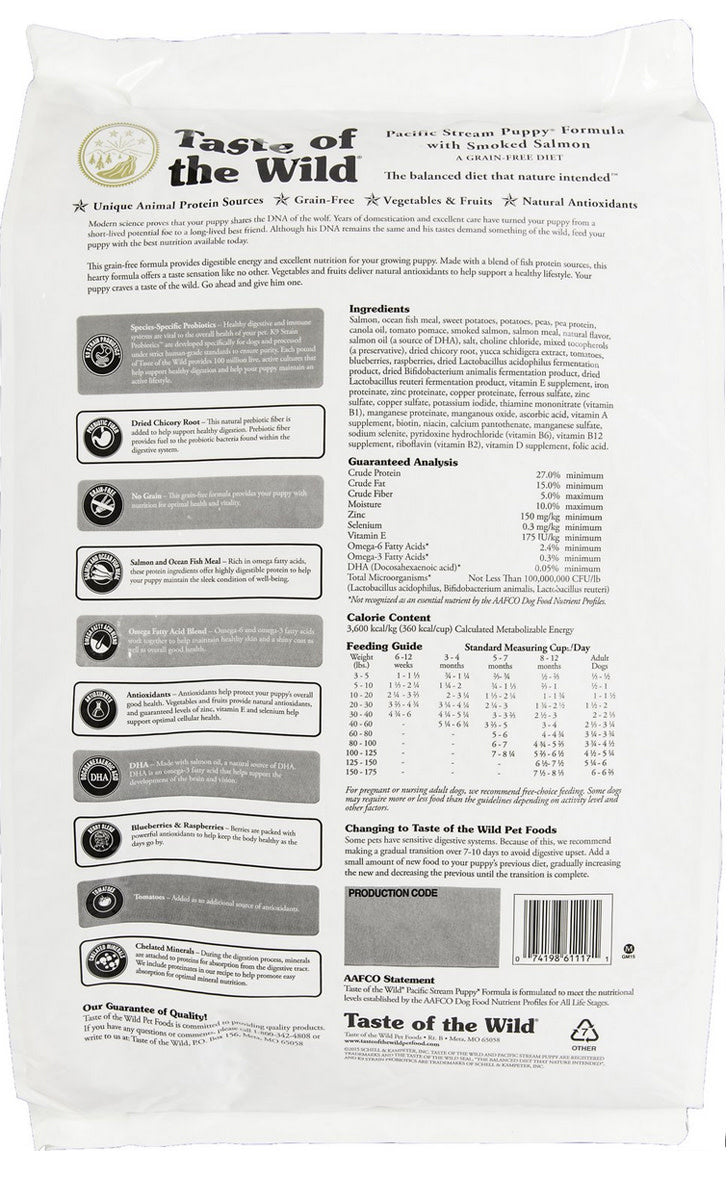 This egg-free recipe gets all its animal protein from fish, meaning that it’s rich in the omega fatty acids that help keep skin healthy and fur smooth and shiny. Unique flavors from smoked salmon, vegetables, legumes and fruits in a small kibble size make it easy for puppies to enjoy the nutrients they need for overall vitality. Because of the guaranteed levels of DHA and perfectly balanced nutrition, this formula is great for pregnant or nursing mothers and other adult dogs as well.