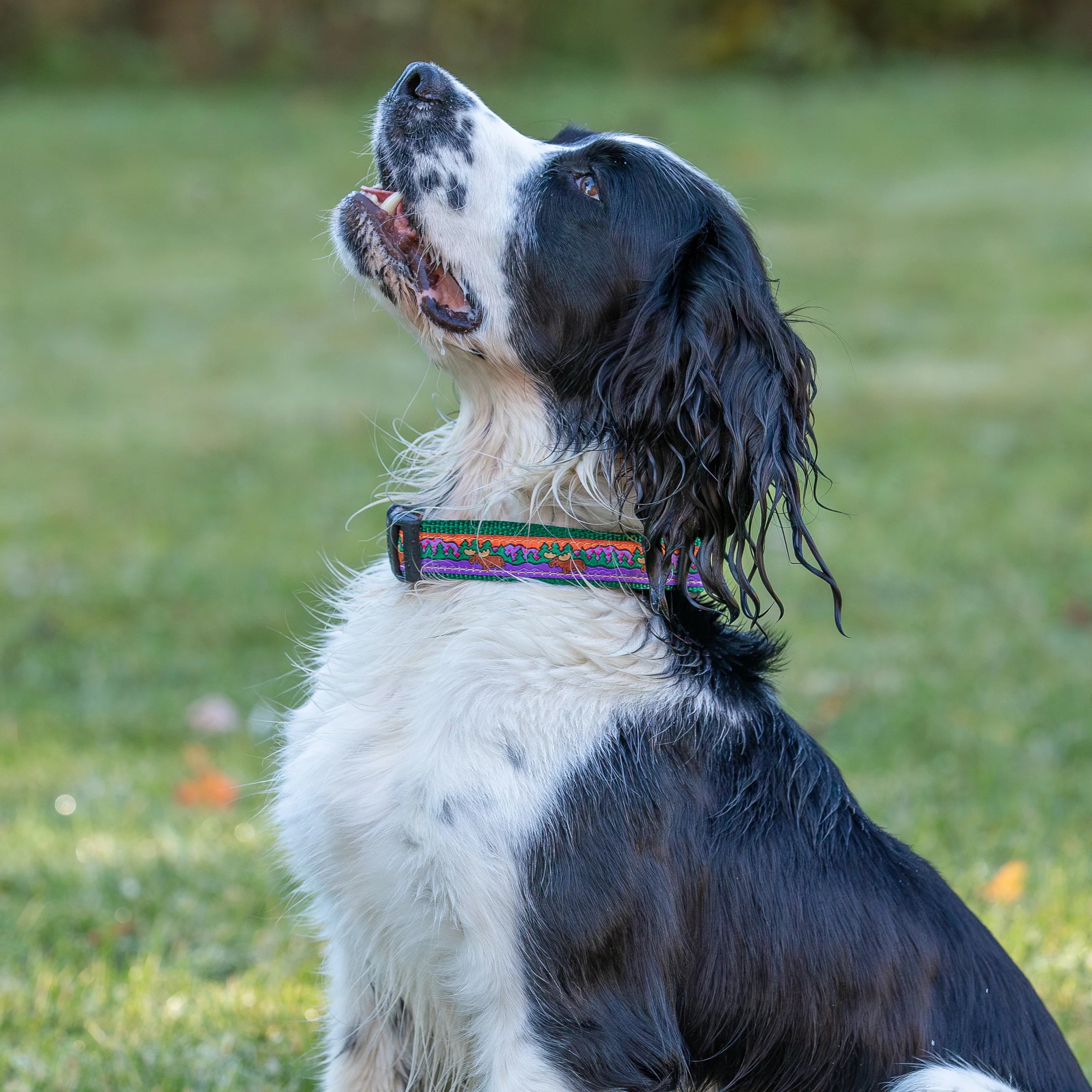 The collar's playful pattern captures the spirit of the wilderness - perfect for pups who think they're part moose, part dog, and part professional trail scout. Its sturdy construction and trusty buckle ensure your furry mountaineer stays secure while investigating every fascinating tree stump and mysterious bush along the way.