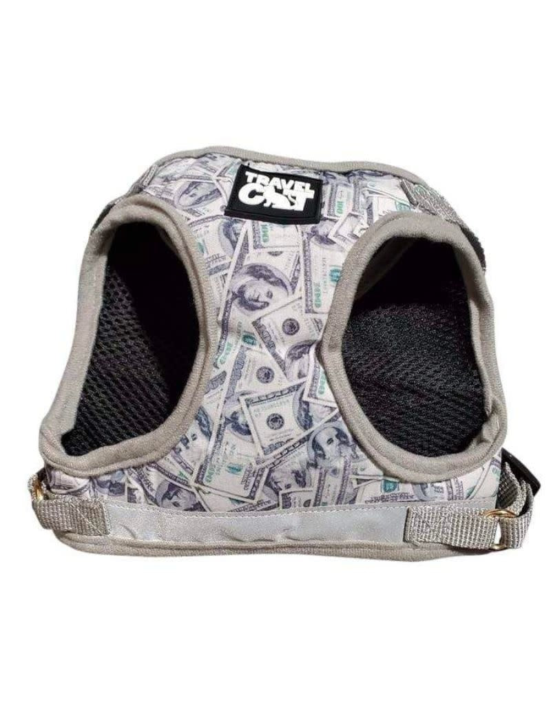Who's kidding, all your spare cash goes to your kitty right? Be proud and let everyone know where your mad money goes. This limited edition version Travel Cat harness comes with the green cash flow pattern, along with gold hardware because your kitty is that extra.