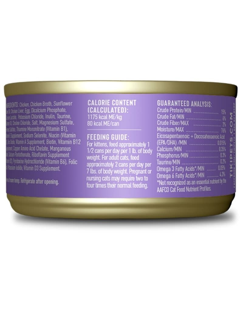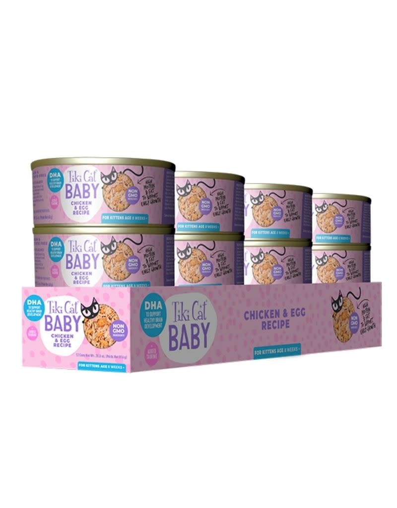 Kittens are born carnivores, but they also have very specific nutritional needs. With increasing energy, developing digestive and immune systems, and growing bodies, they need nutrition designed just for them. Tiki Cat Baby Chicken & Egg Recipe gives kittens their best start, with high protein and fat to support early growth and DHA to promote healthy brain development, in a soft, flavorful formula.