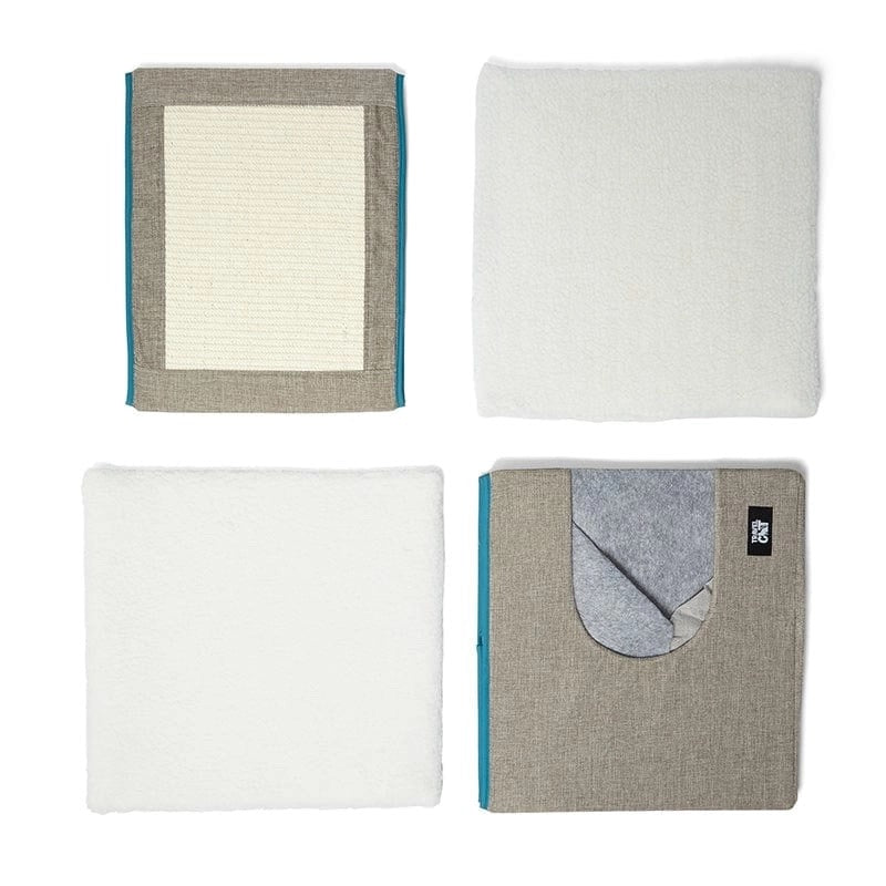 This cozy cat condo is portable, meaning you can bring your kitty's castle with you almost anywhere. It folds up & lays flat, making it convenient to store or pack on a trip, taking up very little space. Just unfold, insert the cushion, attach the scratching panel, and you're good to go! Magnifigue.