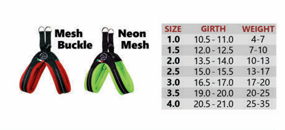 This harness is truly simple and easy to use. Just step in with the front feet, up over the shoulders, and snap! It’s that easy and fast to put on and take off.