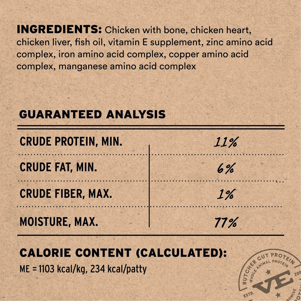 Packed with butcher-cut protein, our limited-ingredient frozen patties are the perfect solution to serving your dog a raw diet containing the naturally occurring vitamins and minerals that build strong muscles for more play, naturally support digestive and oral health, and provide essential nutrients to look and feel their best. Simply thaw and serve, no mixing or cooking required.