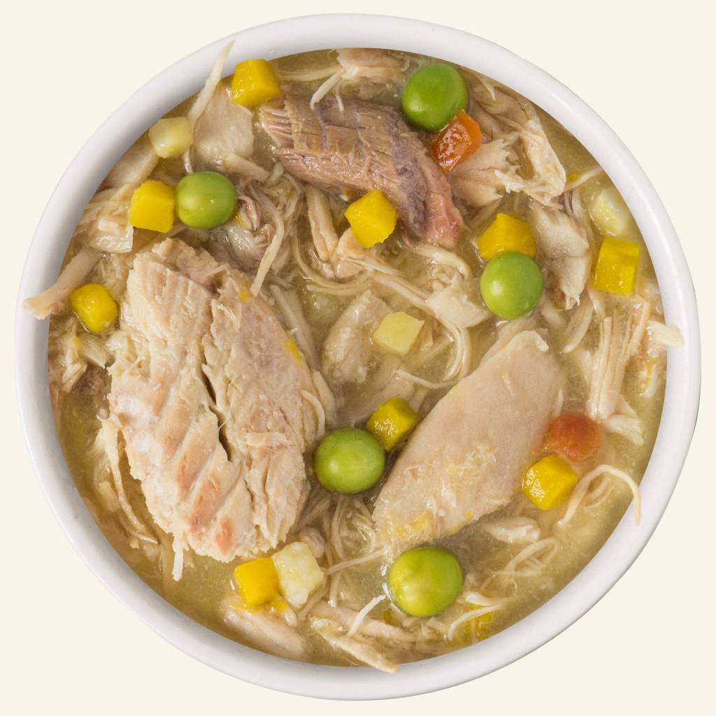 Chicken (Boneless, Skinless, White Breast), Water Sufficient For Processing, Pumpkin, Salmon, Tomato, Pea, Sweet Potato, Sunflower Seed Oil, Dicalcium Phosphate, Xanthan Gum, Choline Chloride, Vitamin E Supplement, Zinc Sulfate, Thiamine Mononitrate (Vitamin B1), Nicotinic Acid (Vitamin B3), Ferrous Sulfate, Calcium Pantothenate, Vitamin A Supplement, Potassium Iodide, Manganese Sulfate, Vitamin D3 Supplement, Copper Sulfate, Riboflavin Supplement (Vitamin B2), Pyridoxine Hydrochloride (Vitamin B6), Folic Acid, Vitamin B12 Supplement