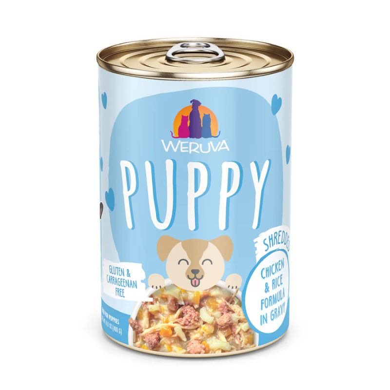 - Available in small cans to start and bigger cans as your puppy grows and grows!