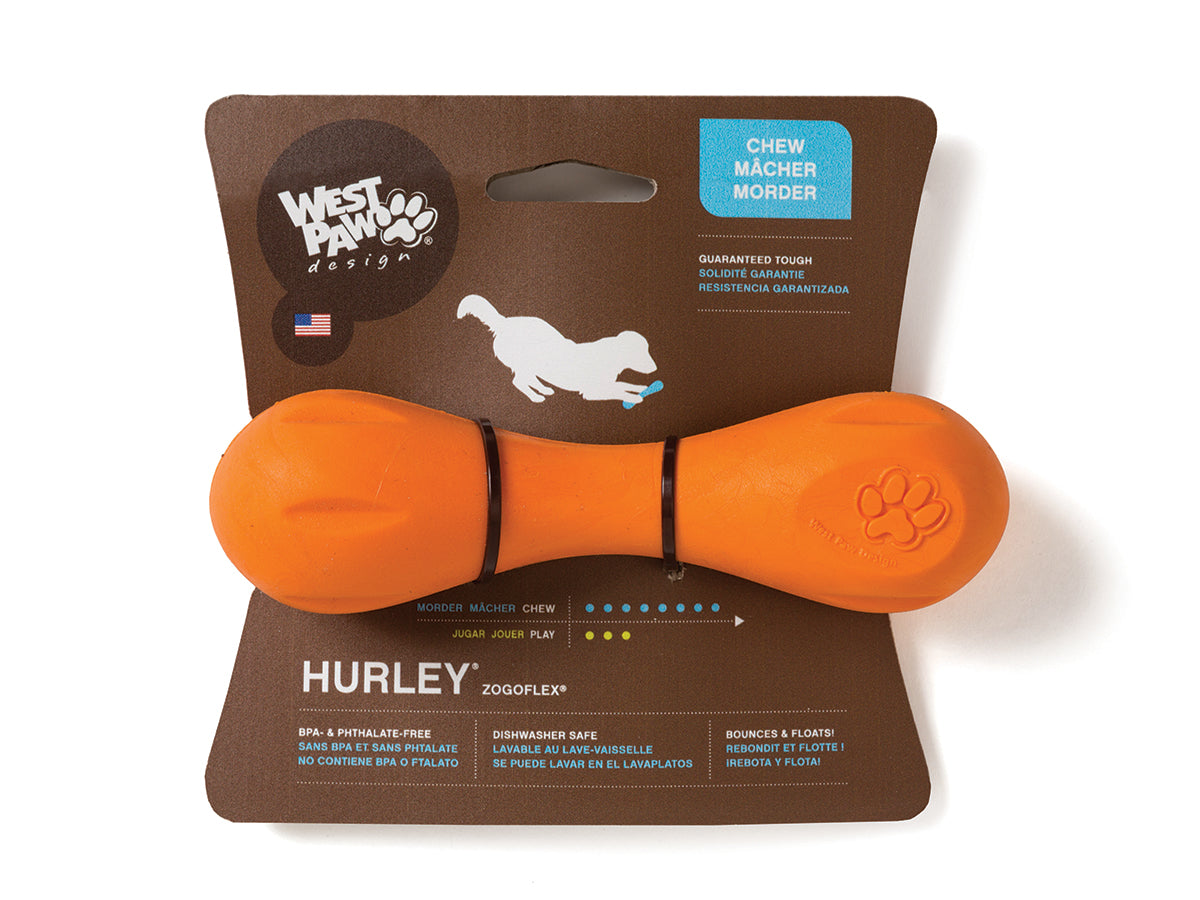 West Paw dog toys are made in the USA. Their Zogoflex dog chew toys are designed to satisfy your dog's chewing needs. Guaranteed or Replaced for free Hurleys are revolutionary dog toys that are so durable, they are guaranteed against dog destruction.