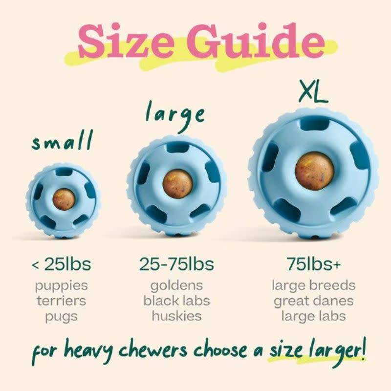 The Pupsicle opens in the middle for easy filling, cleaning, and reuse. To get started, unscrew the bottom, drop in a treat, and give it to your dog.