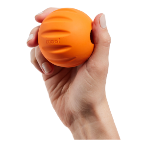 Fetch is fun, but Flyball makes it twice as rewarding. Outside, it’s a durable, launcher-friendly ball designed for endless games of fetch. Inside, hidden treat chambers turn the Flyball into a puzzle your pup can’t resist. Just fill with Woof Puzzle Treats and let them crack the code. Made from durable, tooth-friendly rubber that’s quiet on floors and scuff-resistant. Dishwasher-safe and available in three eye-catching colors, orange, yellow, and lavender. One toy, two ways to play.